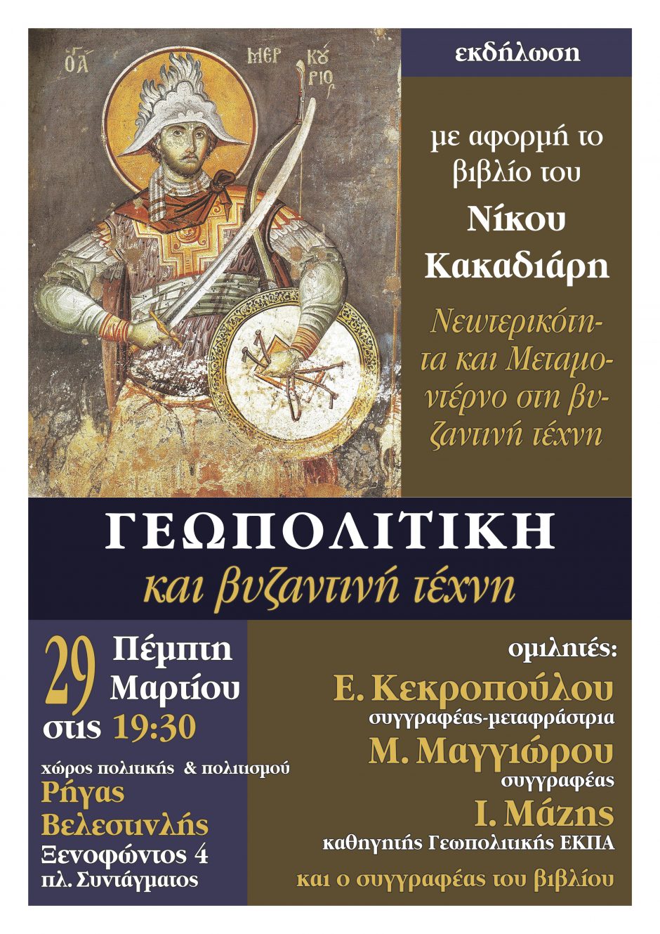 Οι Εναλλακτικές Εκδόσεις με αφορμή το βιβλίο του Νίκου Κακαδιάρη, Νεωτερικότητα και Μεταμοντέρνο στη βυζαντινή τέχνη σας προσκαλούν την Πέμπτη 29 Μαρτίου 2018 στις 19:30,...