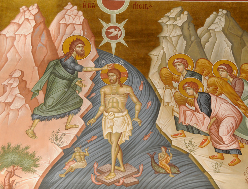 Ὁ Εὐαγγελιστὴς Μάρκος περιγράφει ὡς ἑξῆς τὴ βάπτιση τοῦ Χριστοῦ: Ἐγένετο Ἰωάννης βαπτίζων ἐν τῇ ἐρήμῳ καὶ κηρύσσων βάπτισμα μετανοίας...