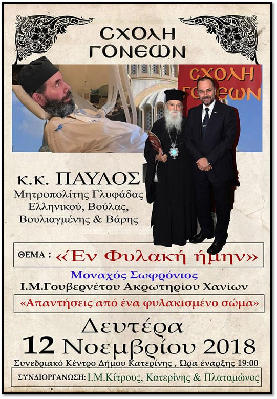 Ο Σεβασμιώτατος Μητροπολίτης Γλυφάδος κ.κ. Παύλος είναι ο επίσημος ομιλητής την Δευτέρα 12 Νοεμβρίου στην Σχολή Γονέων – Ανοικτό Πανεπιστήμιο...