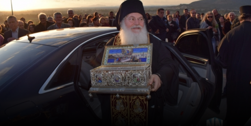 Τις θερμές ευχαριστίες του στον Καθηγούμενο της Ιεράς Μεγίστης Μονής Βατοπαιδίου Γέροντα Εφραίμ που κόμισε το Θεομητορικό Κειμήλιο στον Πειραιά,...