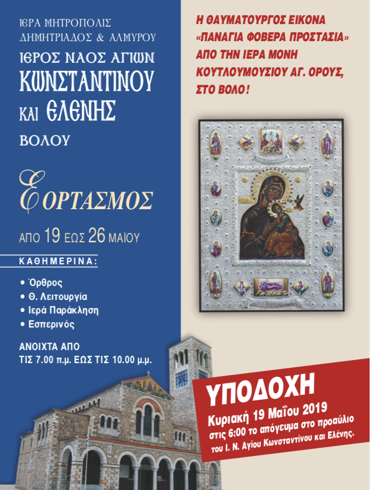 Τη Θαυματουργό Ιερά Εικόνα της Παναγίας «Φοβεράς Προστασίας», η οποία φυλάσσεται στην Ιερά Μονή Κουτλουμουσίου στο Περιώνυμο Περιβόλι της Παναγίας...