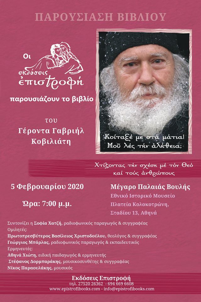 Χτίζοντας τήν σχέση με τόν Θεό και τούς ανθρώπους” του γέροντα Γαβριήλ Κοβιλιάτη.