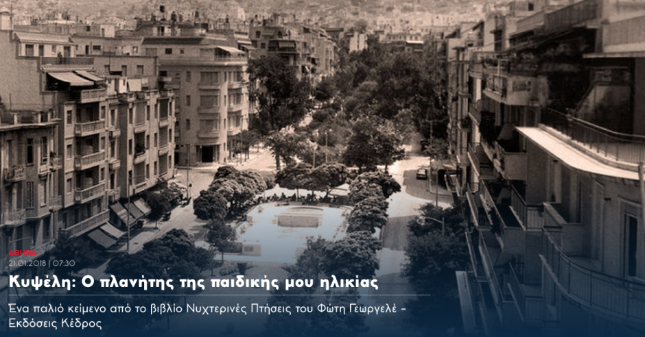 Μεγάλωσα στην Κυψέλη. Ήμουν πιτσιρίκος στην Κυψέλη και έφηβος στην Κυψέλη. Όπως συμβαίνει με τους μεγάλους όταν θυμούνται το μέρος...