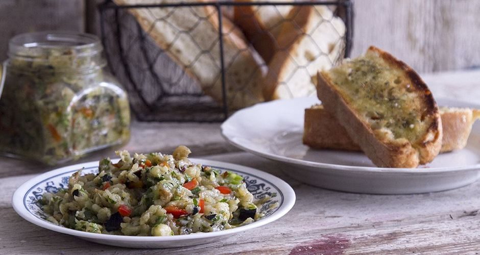 Συστατικά 1 κιλό μελιτζάνες φλάσκες, μέτριες 100 γρ. πιπεριά Φλωρίνης 1 σκ. σκόρδο (4γρ.) 30 ml μηλόξυδο ή ξύδι από λευκό...