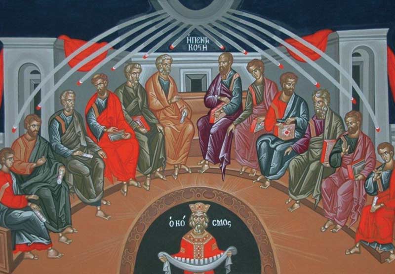 Ἦχος πλ. δ’. Εὐλογητὸς εἶ Χριστὲ ὁ Θεὸς ἡμῶν, ὁ πανσόφους τοὺς ἁλιεῖς ἀναδείξας, καταπέμψας αὐτοῖς τὸ Πνεῦμα τὸ Ἅγιον,...