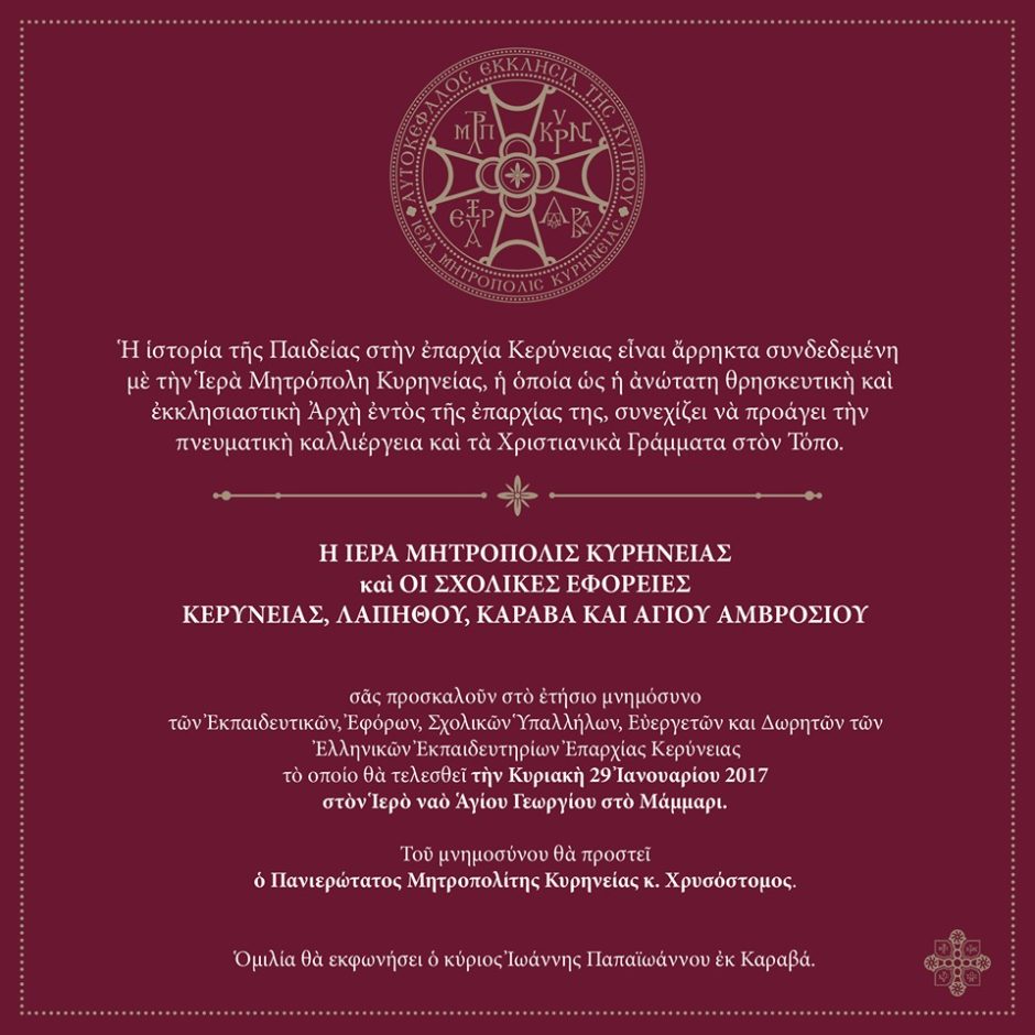 Η Ιερά Βασιλική και Σταυροπηγιακή Μονή Κύκκου σας προσκαλεί στο καθιερωμένο ετήσιο μνημόσυνο του Πρώτου Προέδρου της Κυπριακής Δημοκρατίας, αειμνήστου...