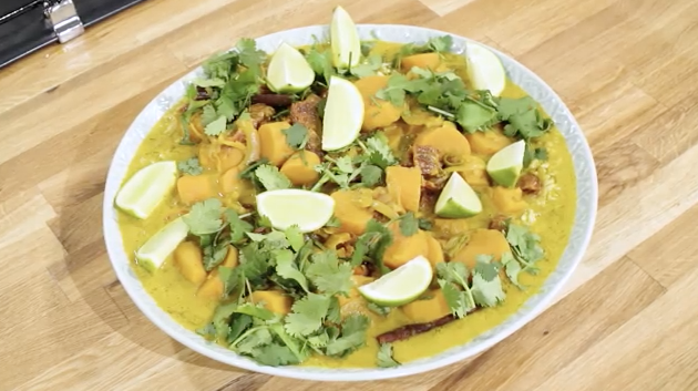 Συστατικά 1 κιλό γλυκοπατάτες 3 κ.σ. ελαιόλαδο 2 κρεμμύδια 2 σκ. σκόρδο 4 πιπεριές τσίλι πολύχρωμες 100 γρ. λιαστές ντομάτες...