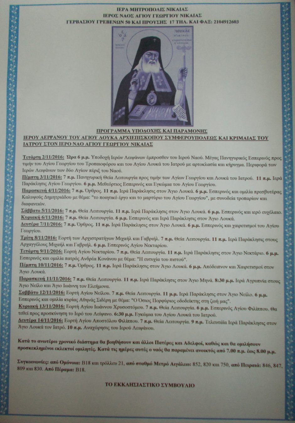 Υποδοχή της Τιμίας Κάρας του Αγίου Νικολάου του Πλανά στην Ενορία του Αγίου Νικολάου Πειραιώς την Πέμπτη 17 Νοεμβρίου 2016...