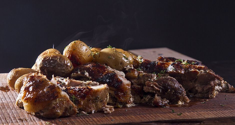 Συστατικά Για το χοιρινό ελαιόλαδο, για πασπάλισμα 5-6 κλ. θυμάρι, μόνο τα φύλλα αλάτι πιπέρι 1 ½ κιλό χοιρινή λάπα...