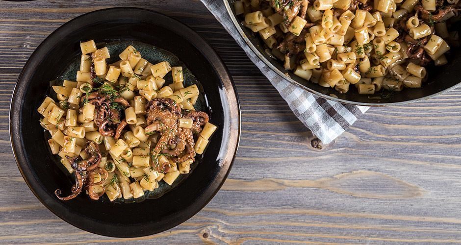 Συστατικά 250 γρ. κοφτό μακαρονάκι 1 κρεμμύδι ξερό 1 σκ. σκόρδο 1 κ.σ. ελαιόλαδο 20 γρ. ούζο 340 γρ. χταπόδι...