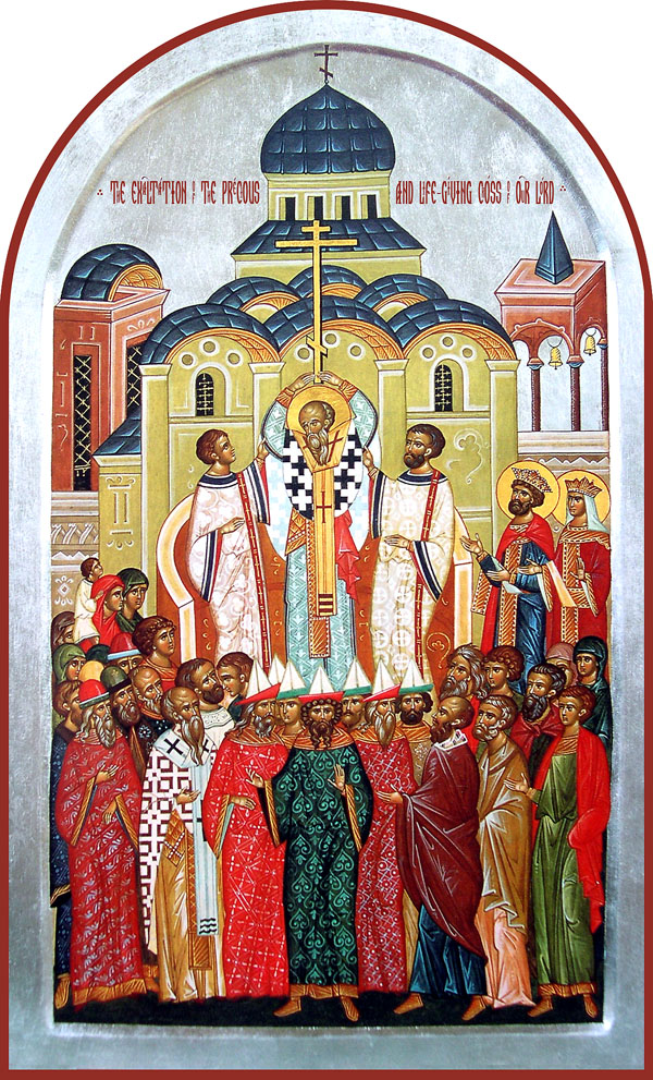 Εορτάζει στις 14 Σεπτεμβρίου εκάστου έτους. Τας εν λάρυγγι Σώτερ υψώσεις φέρει, Υψούμενον βλέπουσα τον Σταυρὸν κτίσις. Υψώθη δεκάτῃ, Σταυρού...