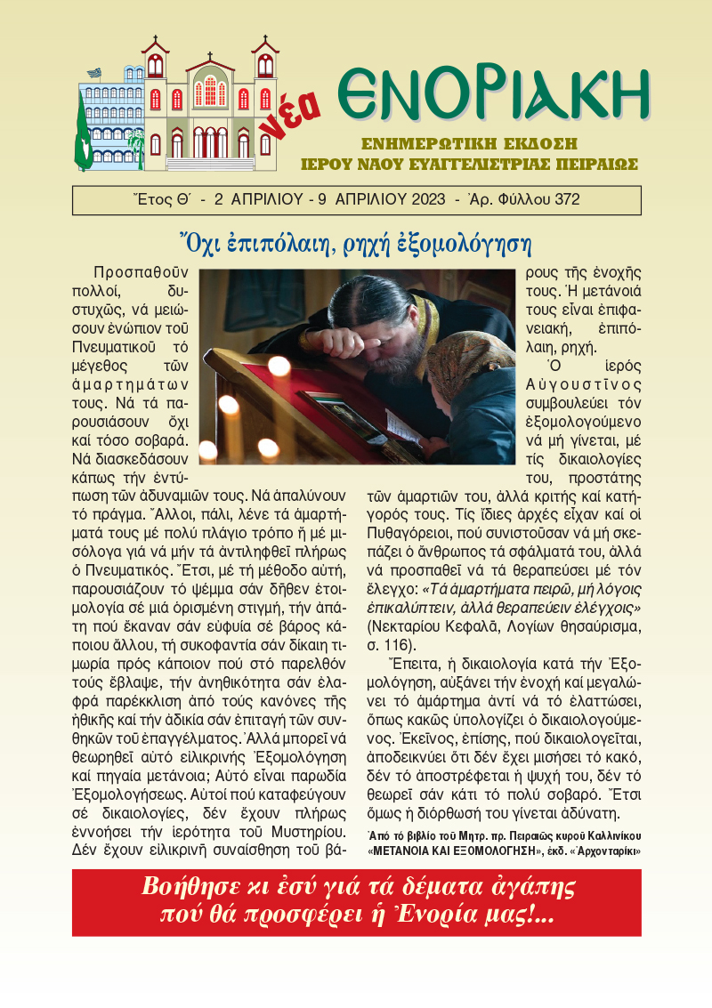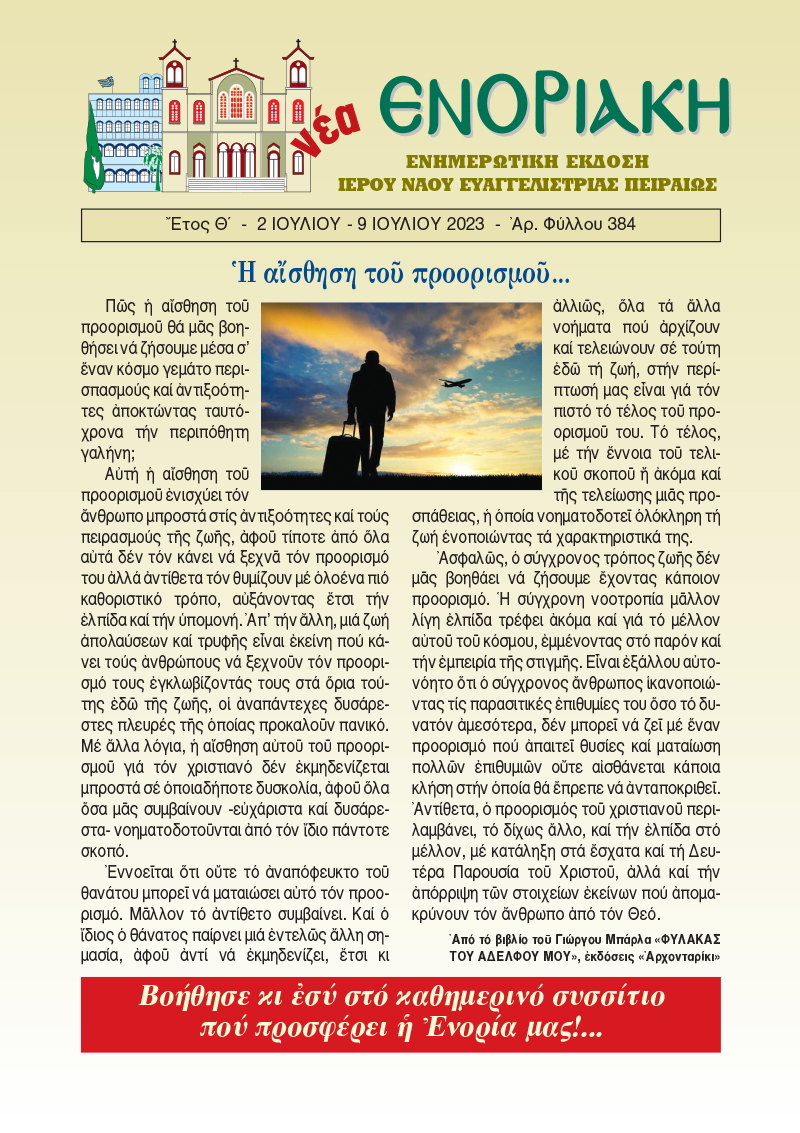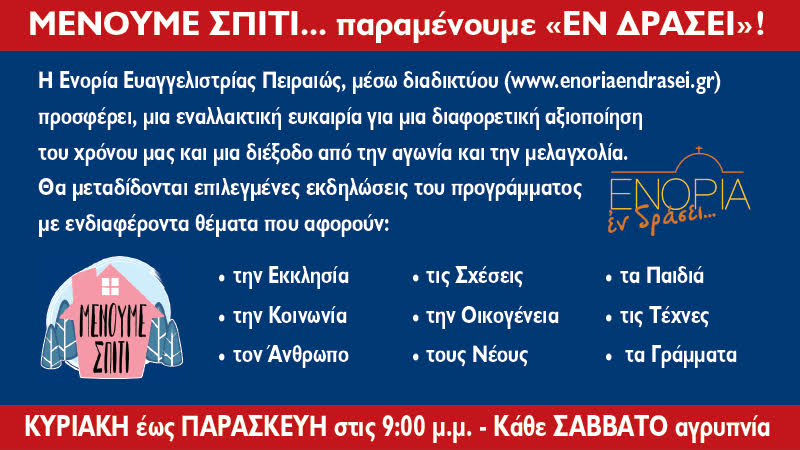 Αυτήν την κοινωνία αγάπης, προσευχής και μετοχής, την πραγματώνει στον χώρο και τον χρόνο, η «ΕΝΟΡΙΑ εν δράσει…». Και αυτός...