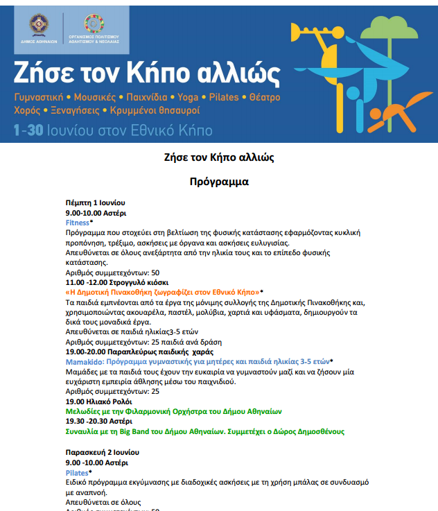 Ο Εθνικός Κήπος, το εμβληματικό τοπόσημο της Αθήνας, από τον Ιούνιο, ζωντανεύει και γίνεται και πάλι προσιτός στη δημιουργία και...