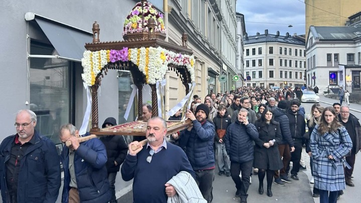 Μέσα στο ψυχρό φως του νορβηγικού βορρά, μια πομπή ξεδιπλώνεται αργά στους δρόμους του Όσλο. Οι ψαλμωδίες της Μεγάλης Παρασκευής...