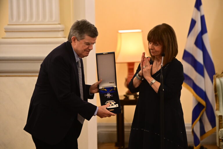 Η Πρόεδρος της Δημοκρατίας Κατερίνα Σακελλαροπούλου, σε τελετή που πραγματοποιήθηκε στο Προεδρικό Μέγαρο, απένειμε το παράσημο του Μεγαλόσταυρου του Τάγματος...
