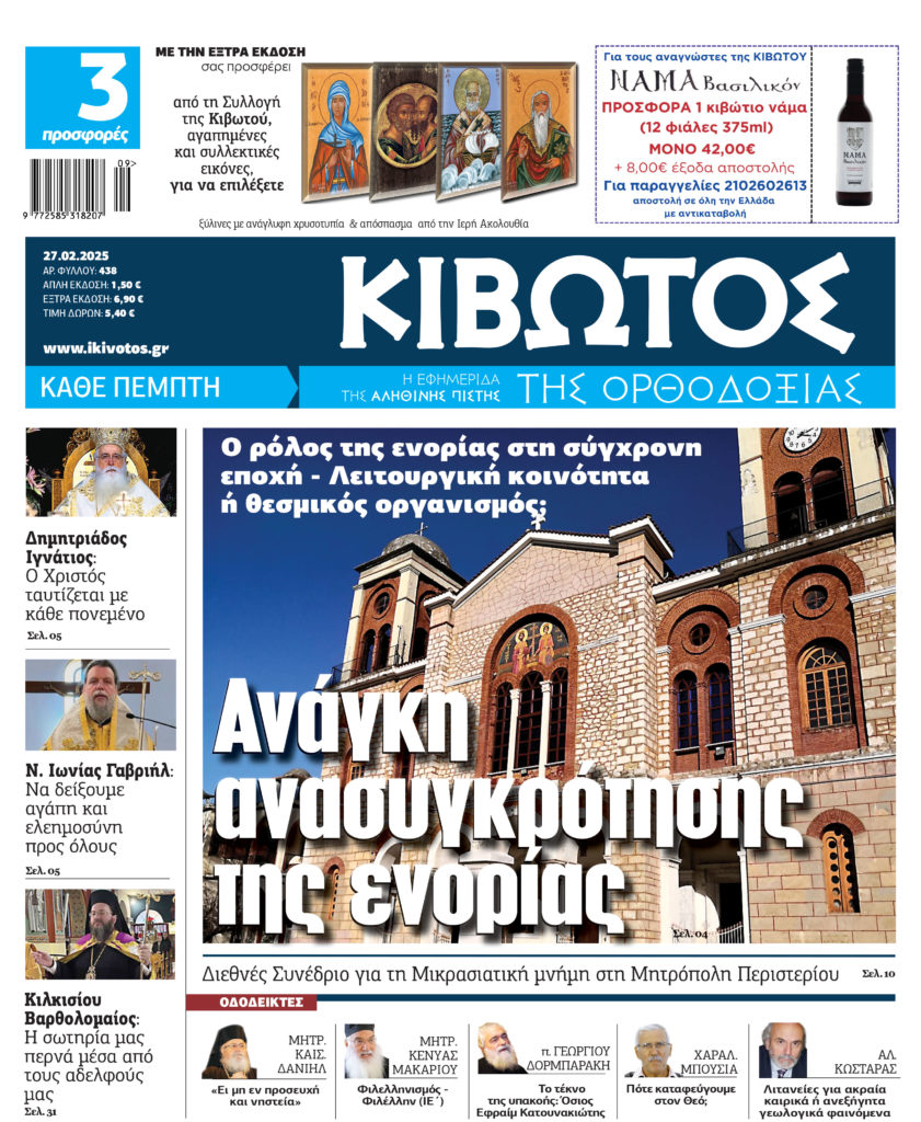 Την Πέμπτη, 27 Φεβρουαρίου, κυκλοφορεί το νέο φύλλο της Εφημερίδας «Κιβωτός της Ορθοδοξίας». Την Πέμπτη 27 Φεβρουαρίου η εφημερίδα Κιβωτός...