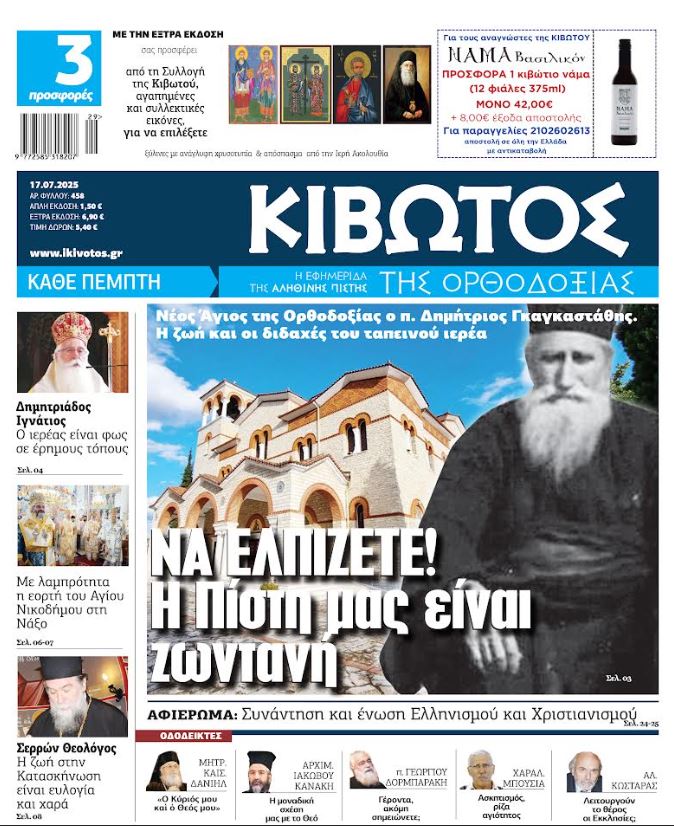 Tην Πέμπτη, 23 Μαΐου, κυκλοφορεί το νέο φύλλο της Εφημερίδας «Κιβωτός της Ορθοδοξίας» – Όλες οι Προσφορές! Την Πέμπτη 23...
