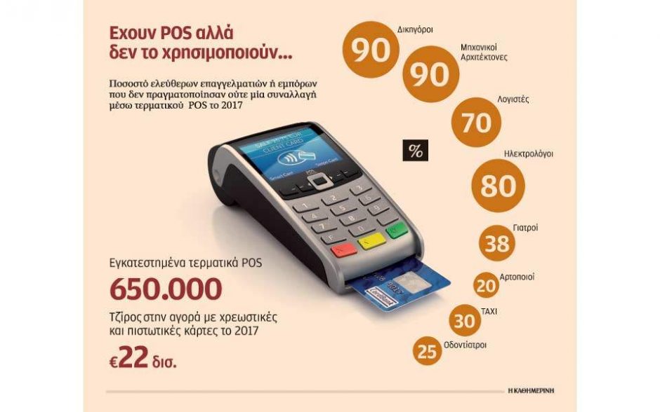 Στη λογική τού «αχρείαστο να ’ναι» τοποθέτησαν τα τερματικά αποδοχής καρτών βασικές επαγγελματικές κατηγορίες, όπως δικηγόροι, λογιστές, μηχανικοί, ηλεκτρολόγοι, γιατροί,...
